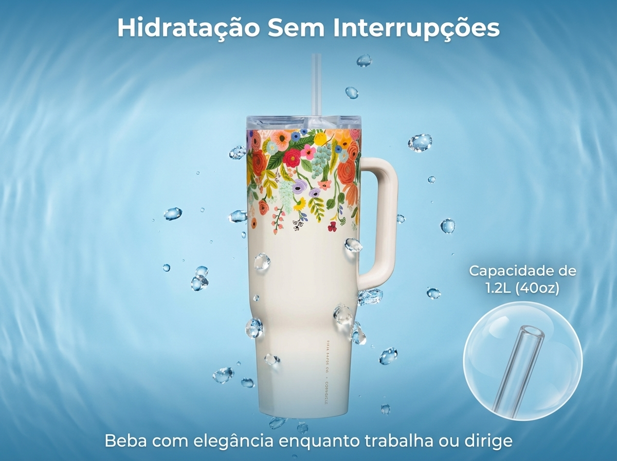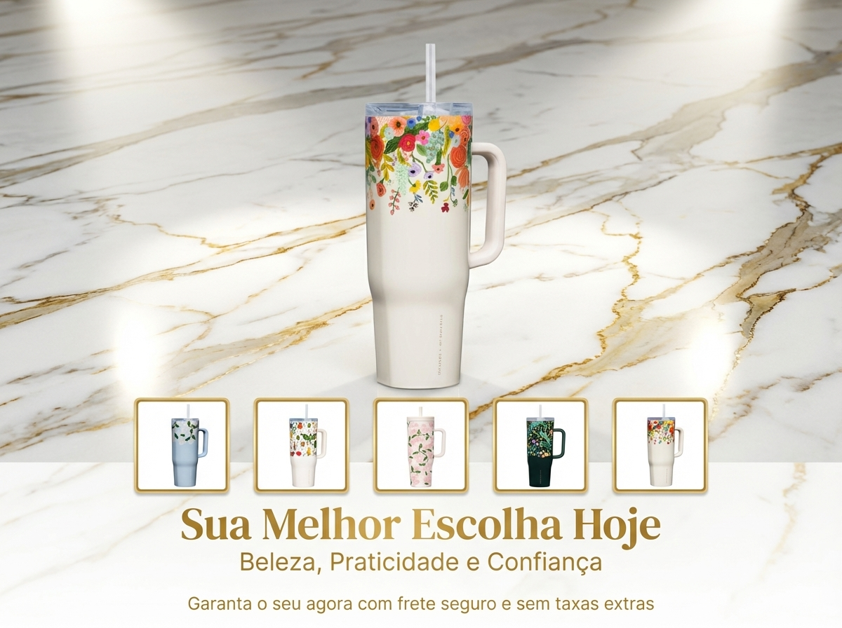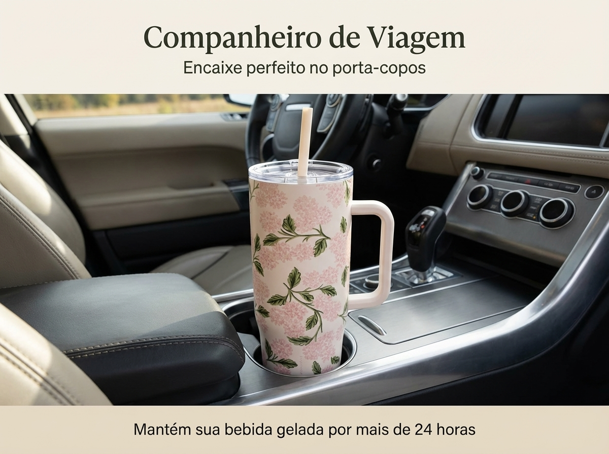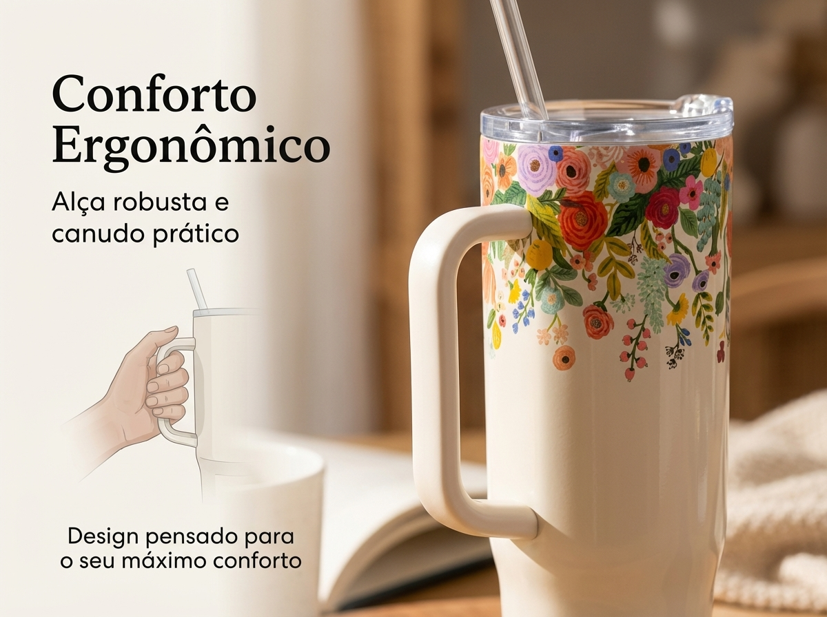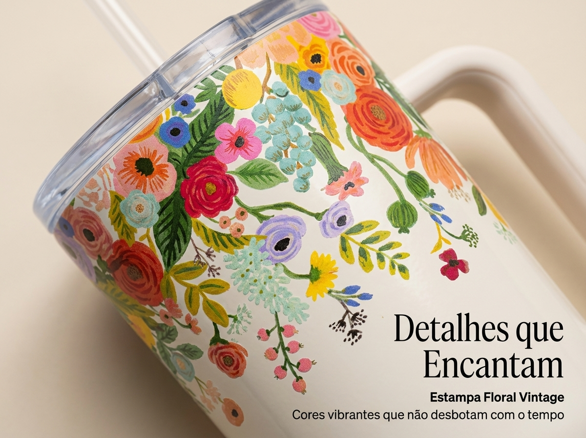 Copo Térmico Quencher 1,2L com Alça e Canudo - Estampa Exclusiva Floral 🌸