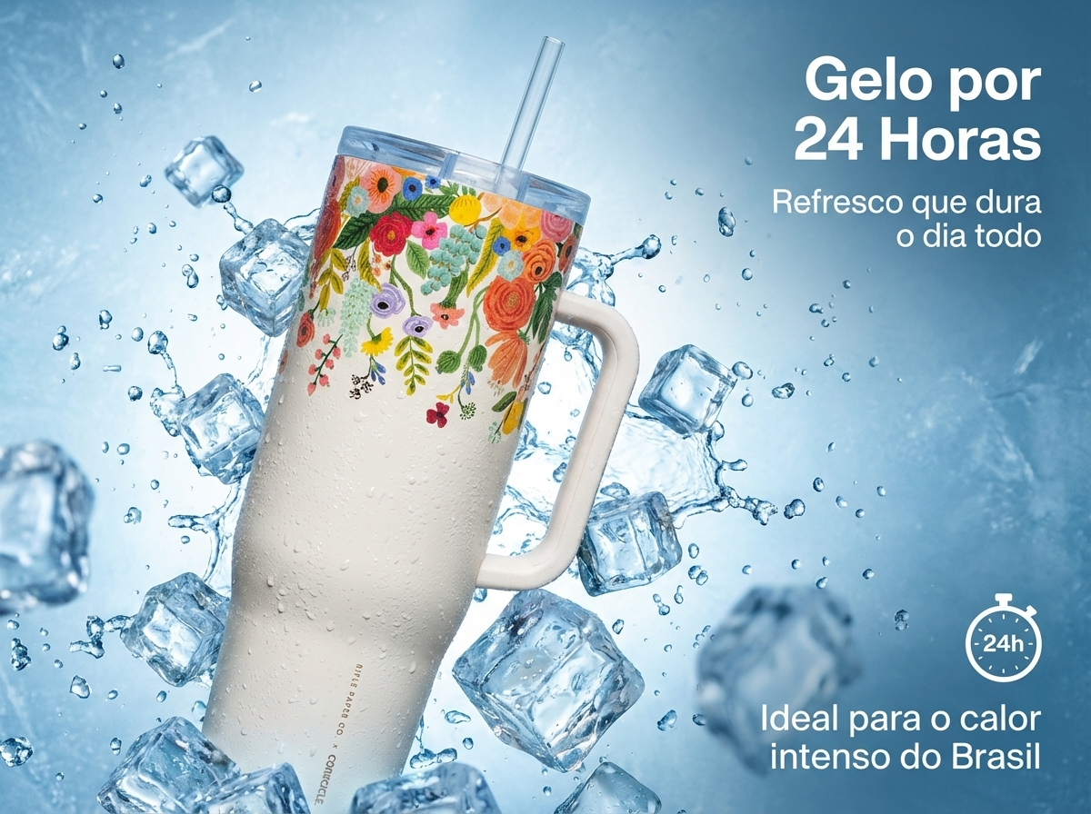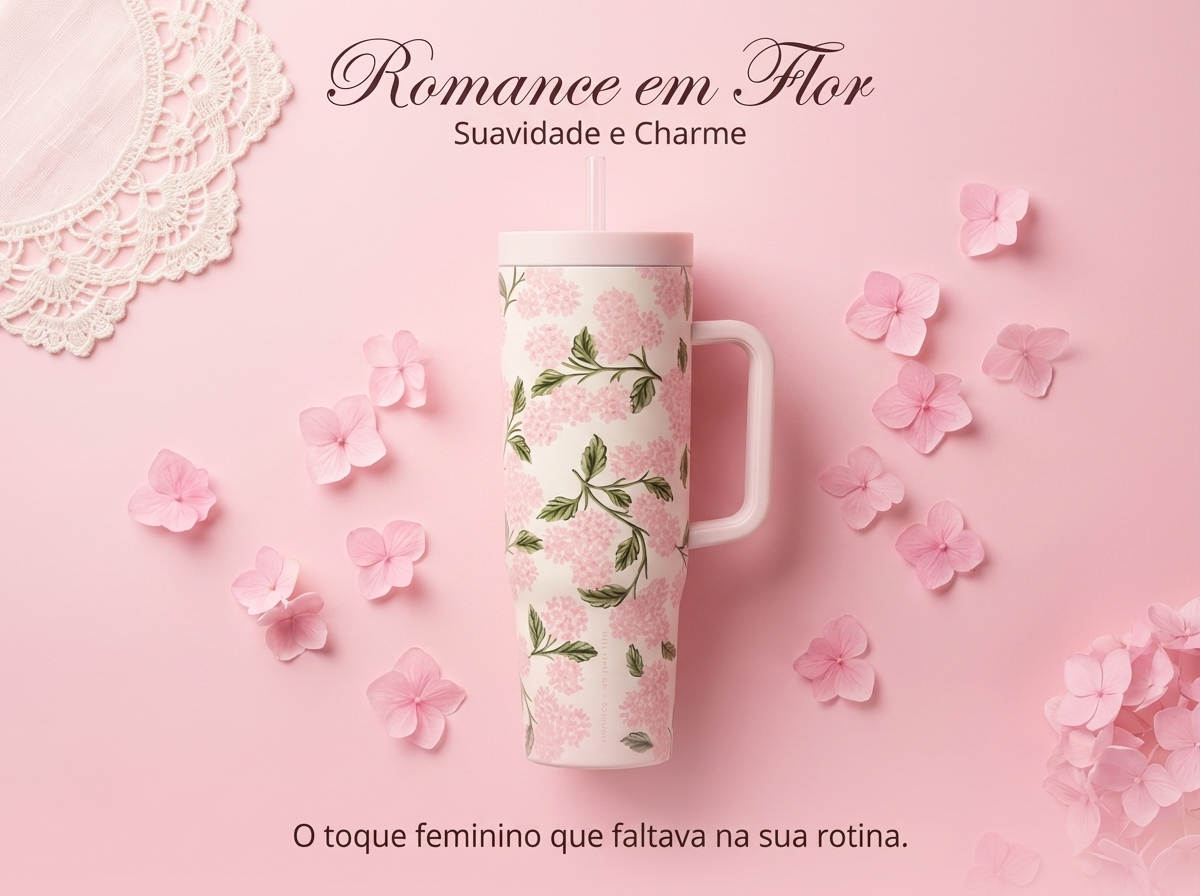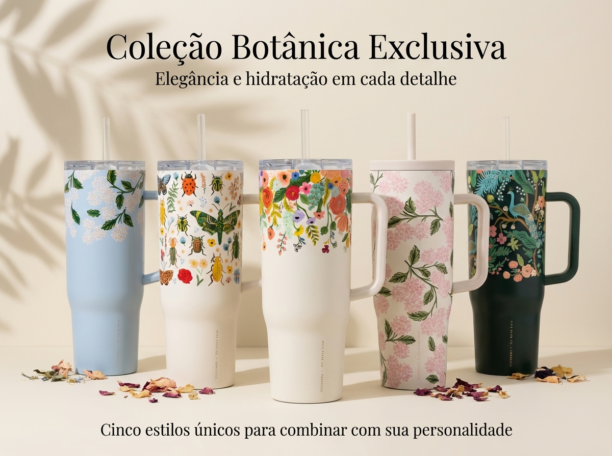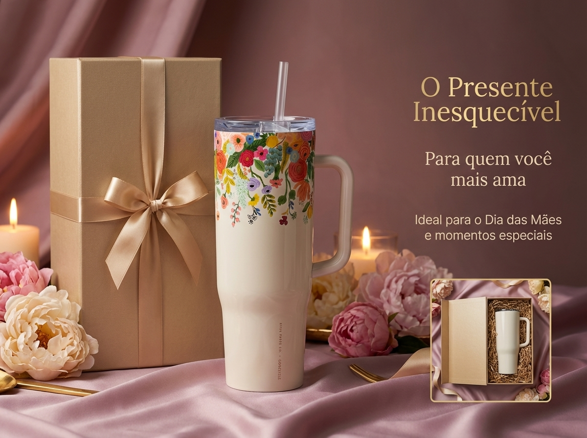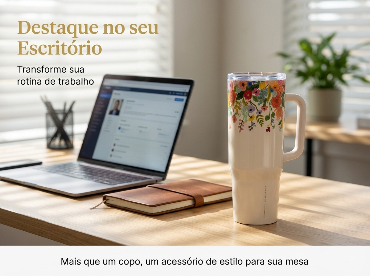 Copo Térmico Quencher 1,2L com Alça e Canudo - Estampa Exclusiva Floral 🌸