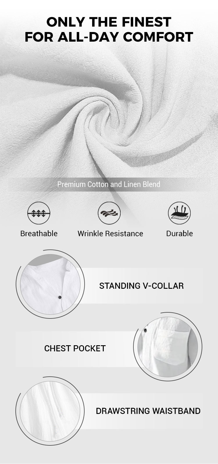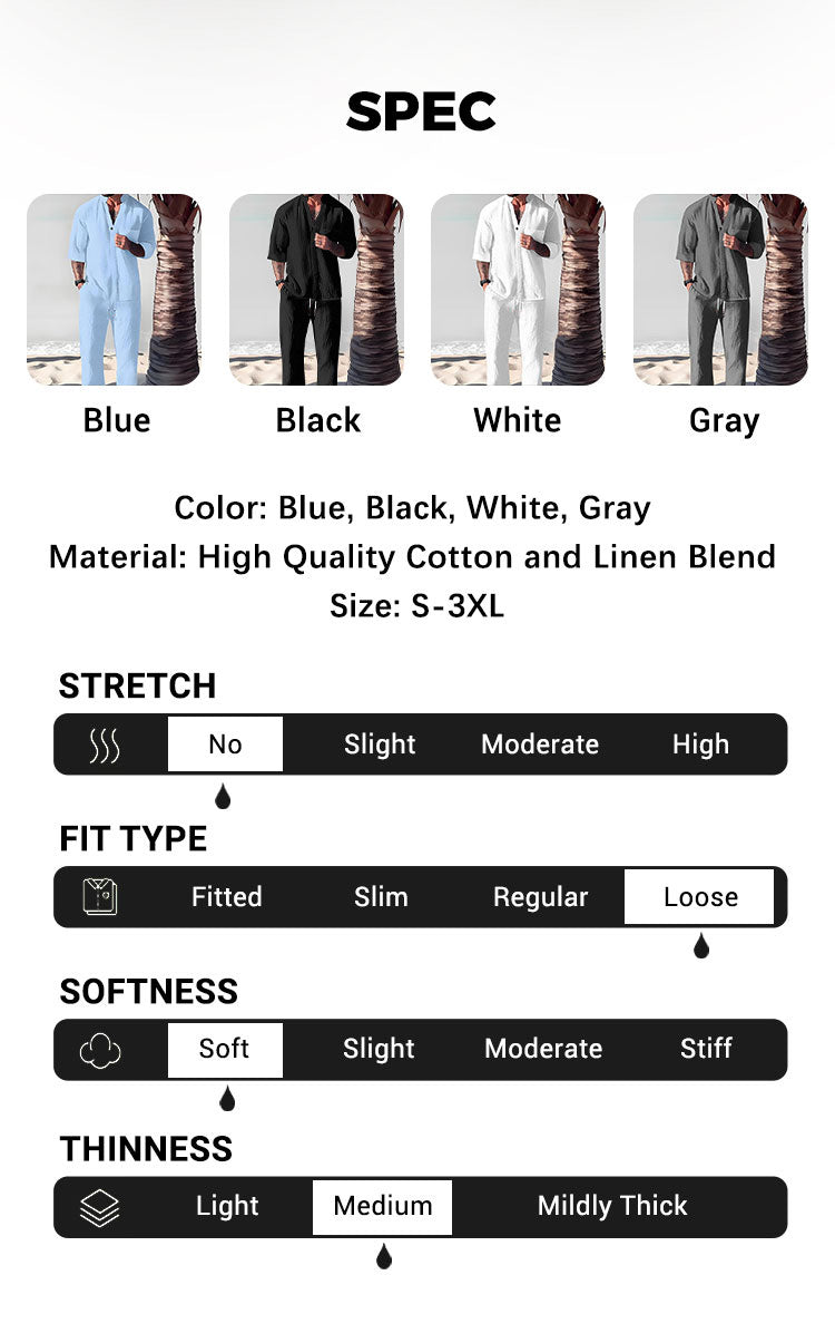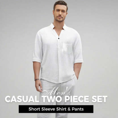 🎉GRANDE PROMOÇÃO🎉Conjunto de duas peças masculino moderno com blusa e calça de algodão e linho