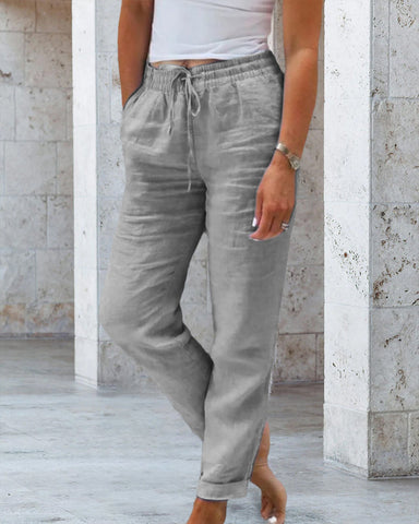 Calça feminina cintura elástica algodão linho perna larga🥰