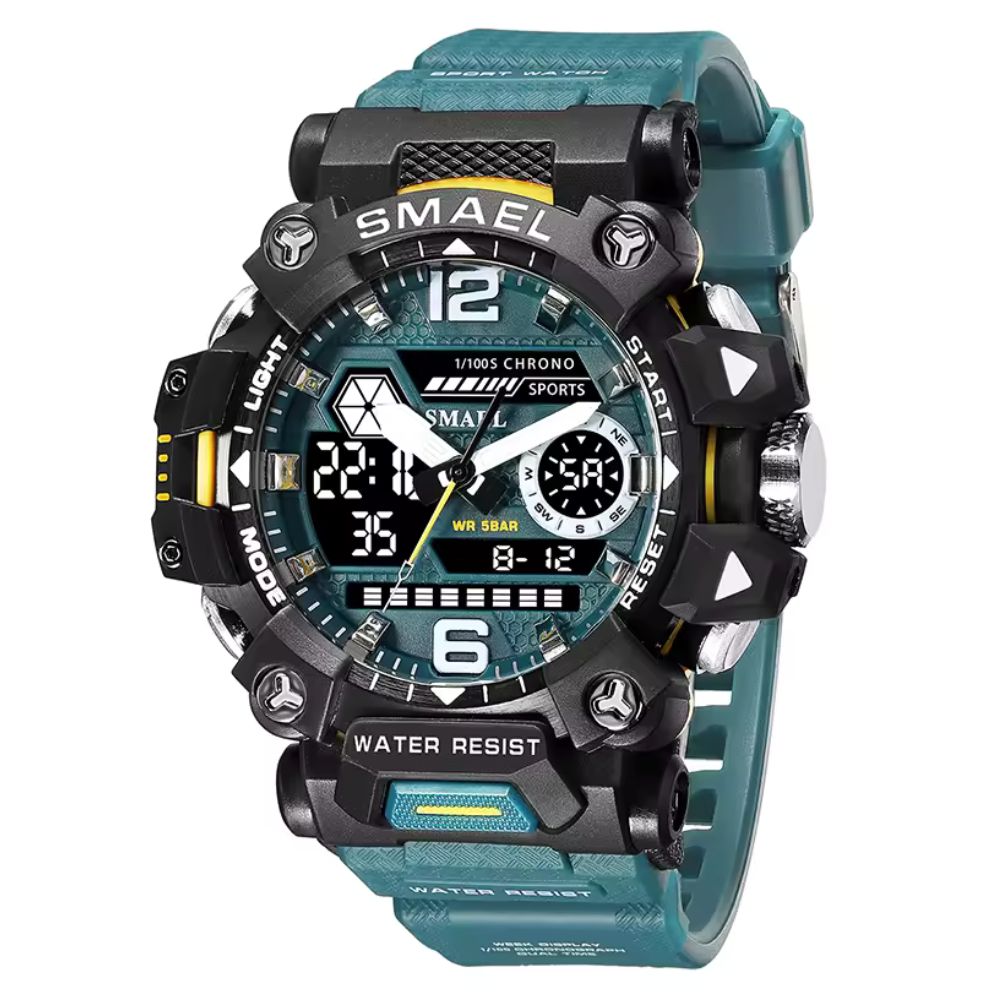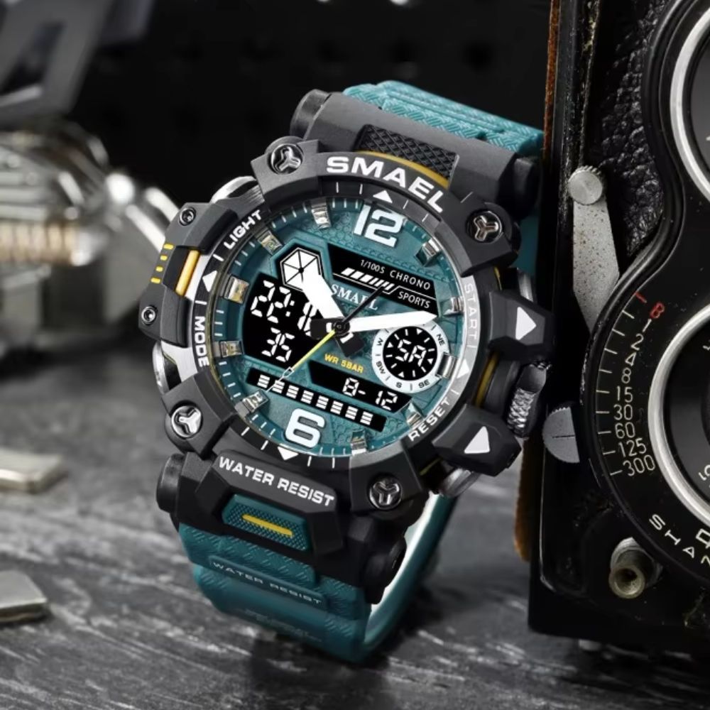 Com o Relógio Smael, você tem mais do que resistência. Ele oferece alta performance para quem não aceita nada menos que o melhor. Resistente a impactos e à água, esse relógio foi feito para os mais exigentes. Seu design arrojado e suas funções avançadas garantem que ele se encaixe em qualquer ambiente, seja na trilha, no trabalho ou em um evento formal.