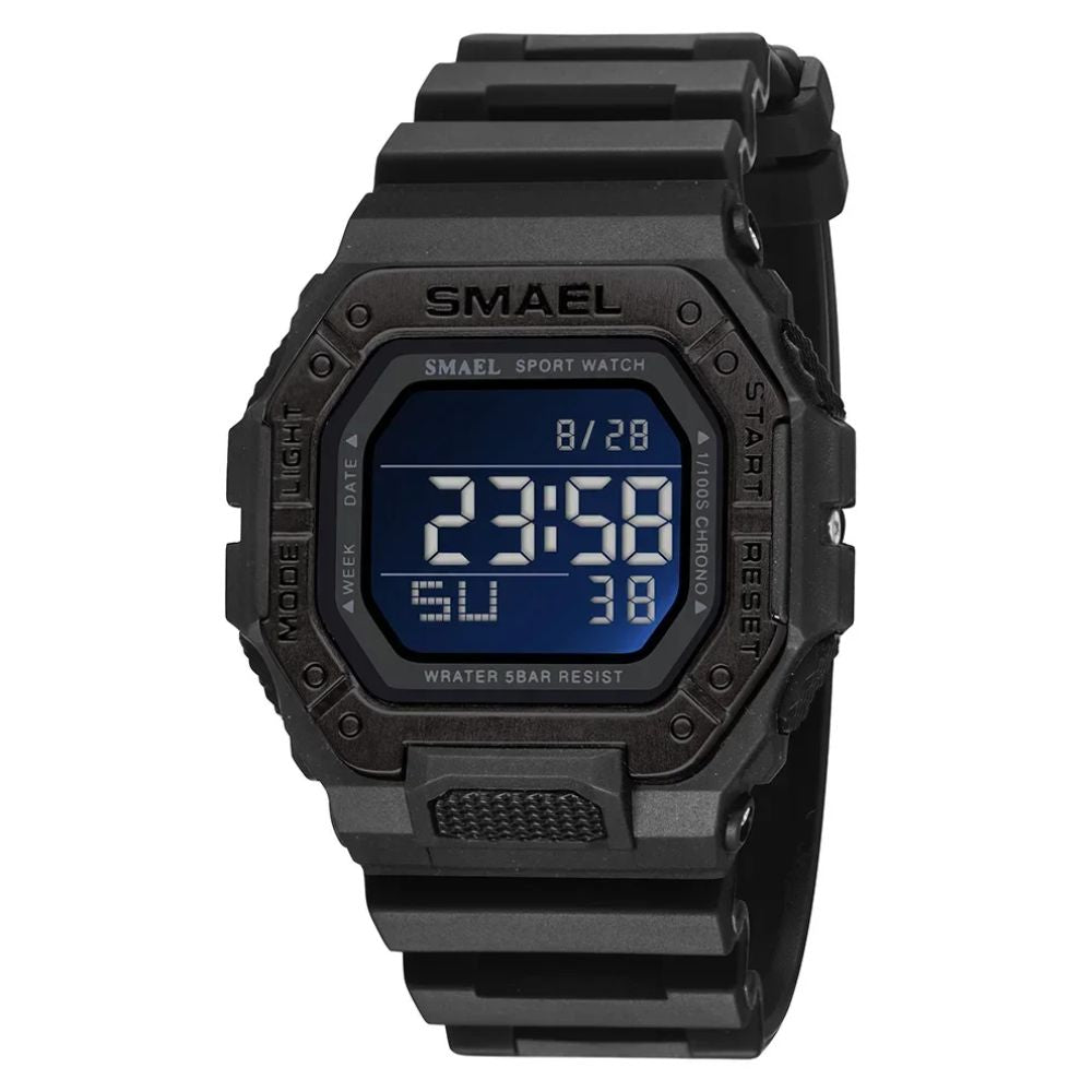 O Relógio Smael possui resistência à água de até 50 metros, proporcionando confiança e tranquilidade na chuva, na piscina e até em atividades aquáticas leves. O sistema de vedação exclusivo da Smael garante que o relógio seja hermeticamente fechado para proteger o mecanismo de danos causados pela água. Consulte o manual de uso e garantia para obter mais informações.
