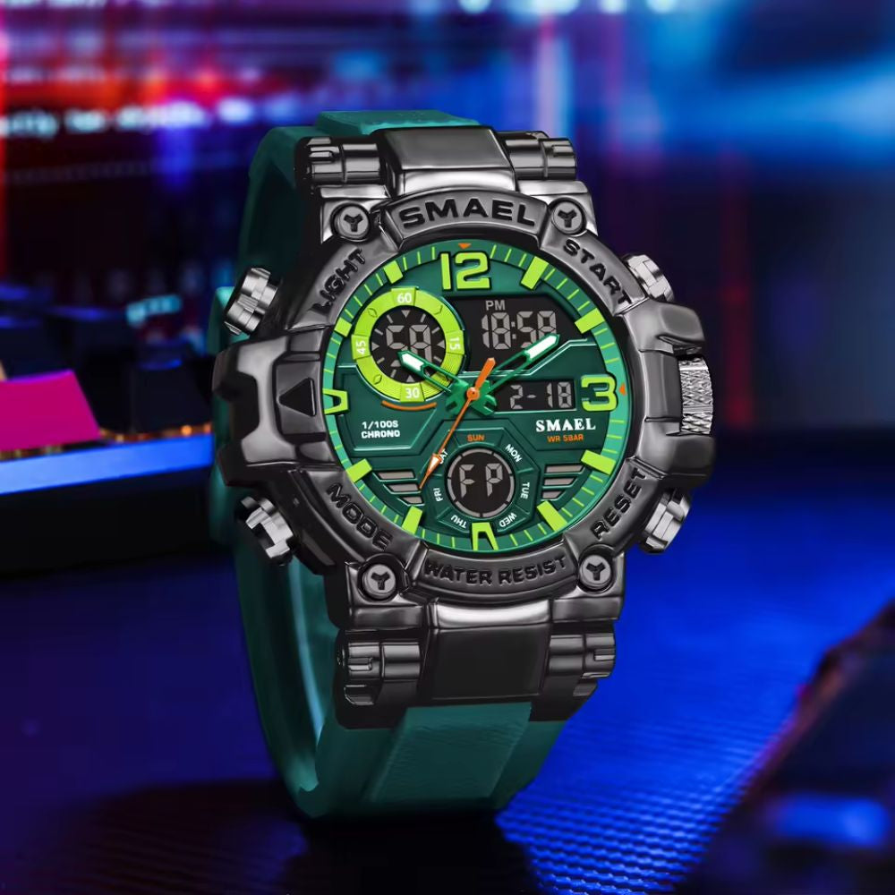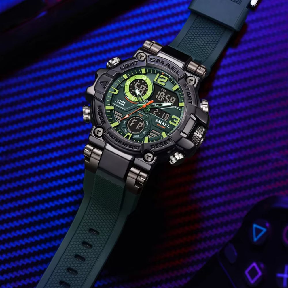 Cada detalhe deste relógio foi desenvolvido para refletir personalidade e presença. O design robusto chama atenção sem excessos, transmitindo força e respeito à primeira vista. Aliado à tecnologia e à resistência necessárias para o dia a dia, ele acompanha uma rotina ativa com segurança, precisão e estilo, dentro ou fora do ambiente urbano.