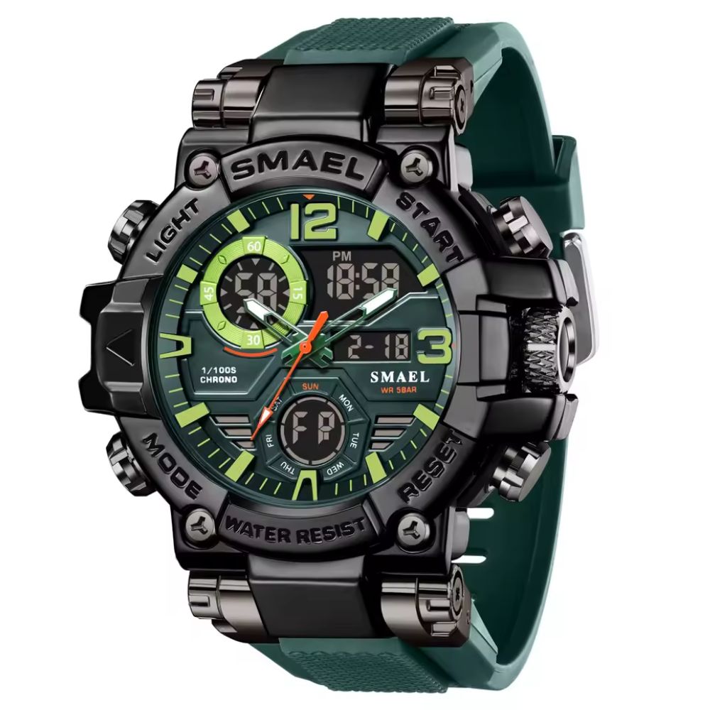 O Relógio Smael possui resistência à água de até 50 metros, proporcionando confiança e tranquilidade na chuva, na piscina e até em atividades aquáticas leves. O sistema de vedação exclusivo da Smael garante que o relógio seja hermeticamente fechado para proteger o mecanismo de danos causados pela água. Consulte o manual de uso e garantia para obter mais informações.