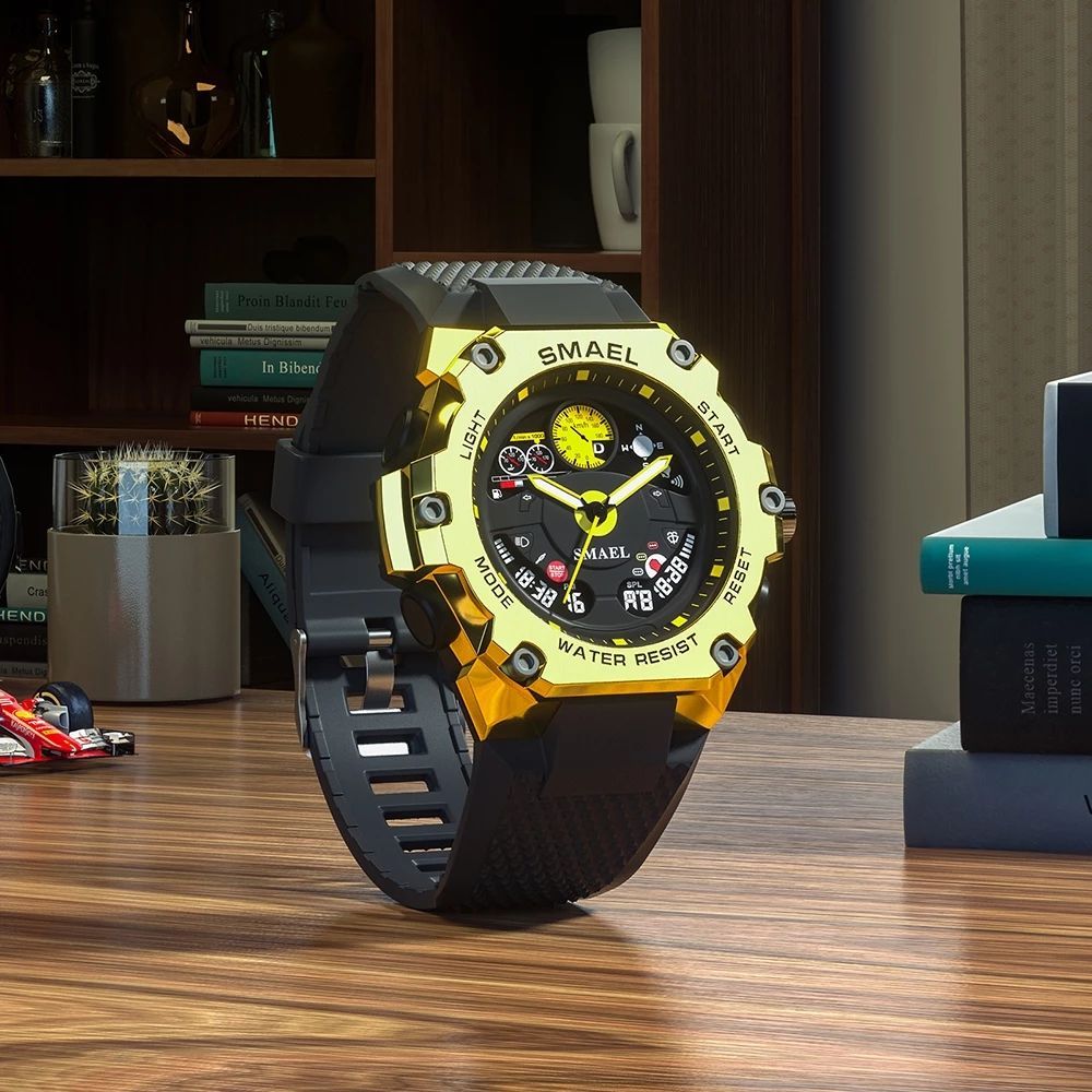 O Relógio Masculino Smael transforma seu visual em uma extensão da sua personalidade forte e imponente. Seu design agressivo, somado ao acabamento impecável, transmite confiança, estilo e presença sem que você precise dizer uma palavra. Prepare-se para ser notado, admirado e respeitado.