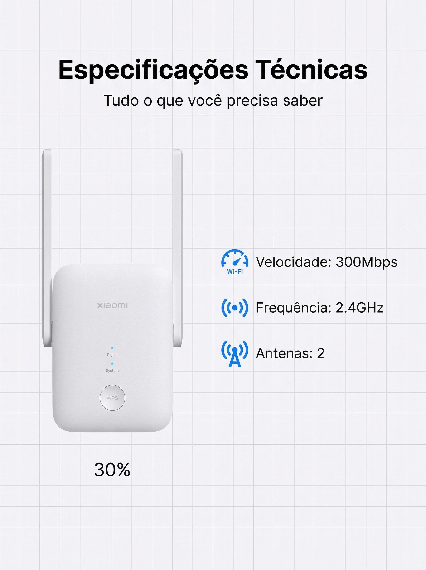 Repetidor de Sinal WiFi Xiaomi Mi Pro 300Mbps - Original | Alcance Total Sem Pontos Mortos em Casa