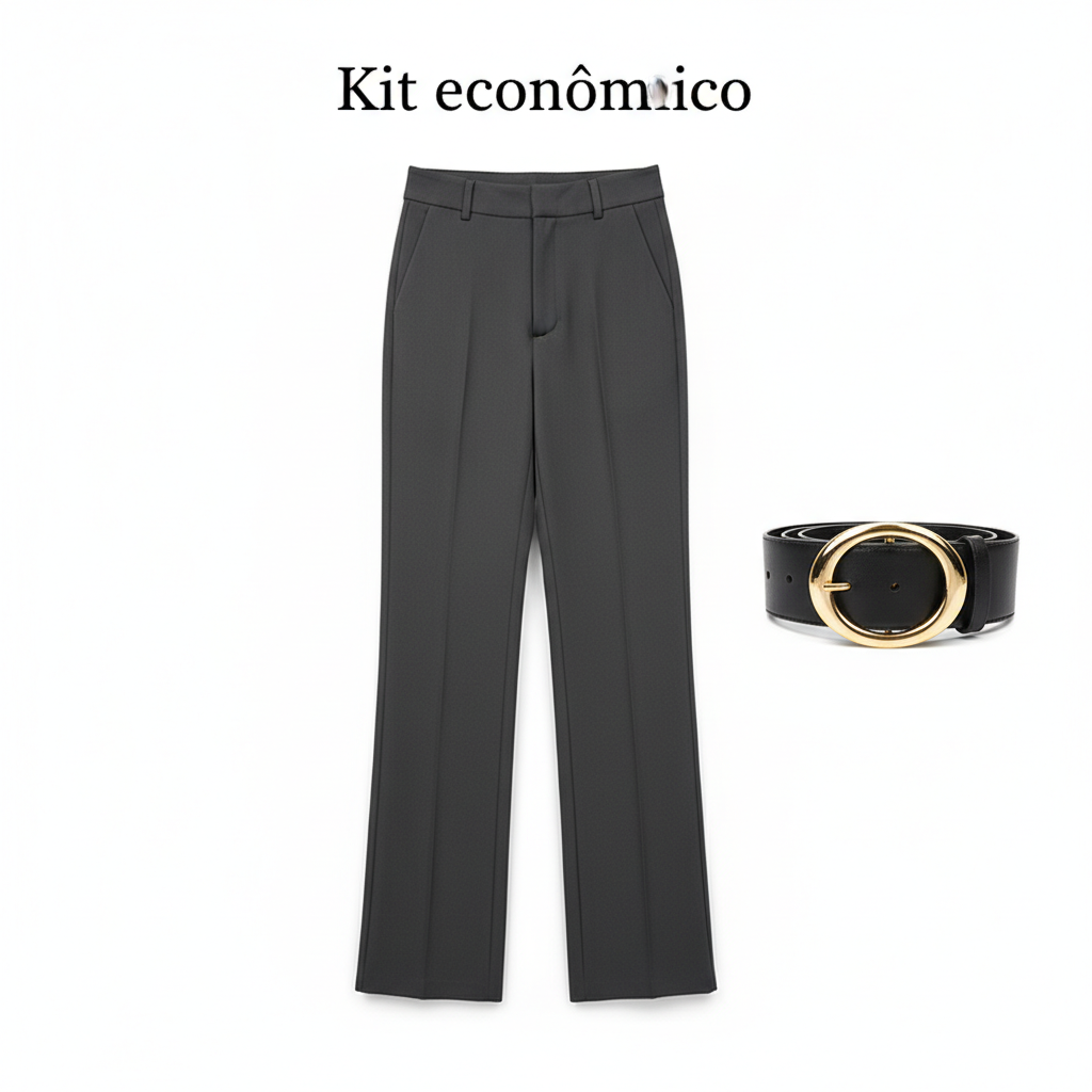🔥 50% DE DESCONTO ENQUANTO DURAR O ESTOQUE! 🎉 Calça Social Feminina Cintura Alta | 2 PEÇAS = FRETE GRÁTIS 🔥