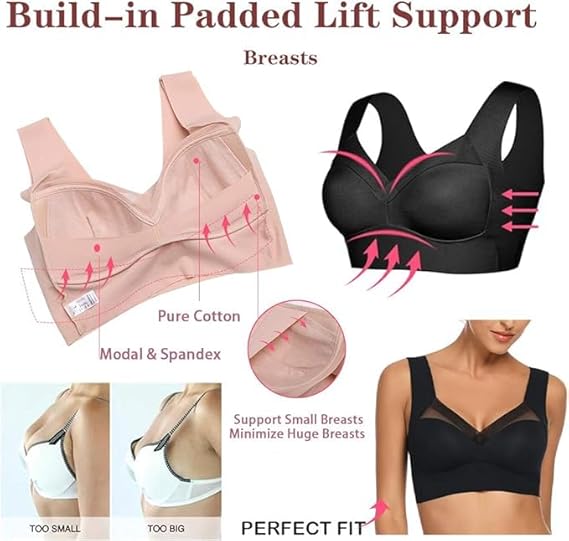 O Sutiê oferece suporte sem arame, sendo flexível o suficiente para não apertar e causar aquela chata gordura nas costas e axilas, suavizando as laterais das mamas,inchamentos e linhas de sutiê desagradáveis.